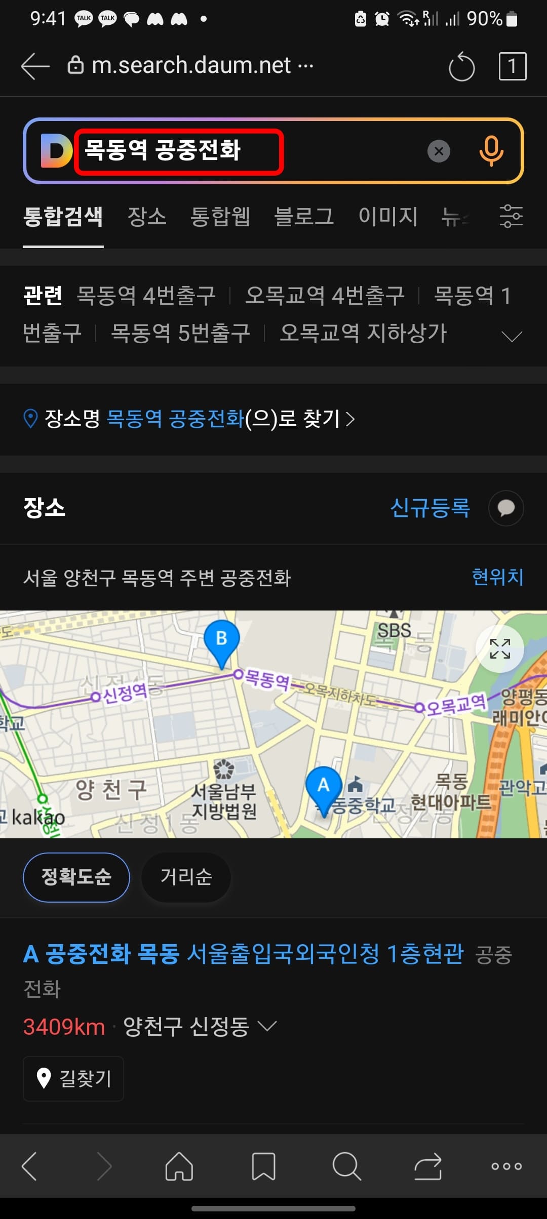 다음 앱 공중전화 위치검색 방법