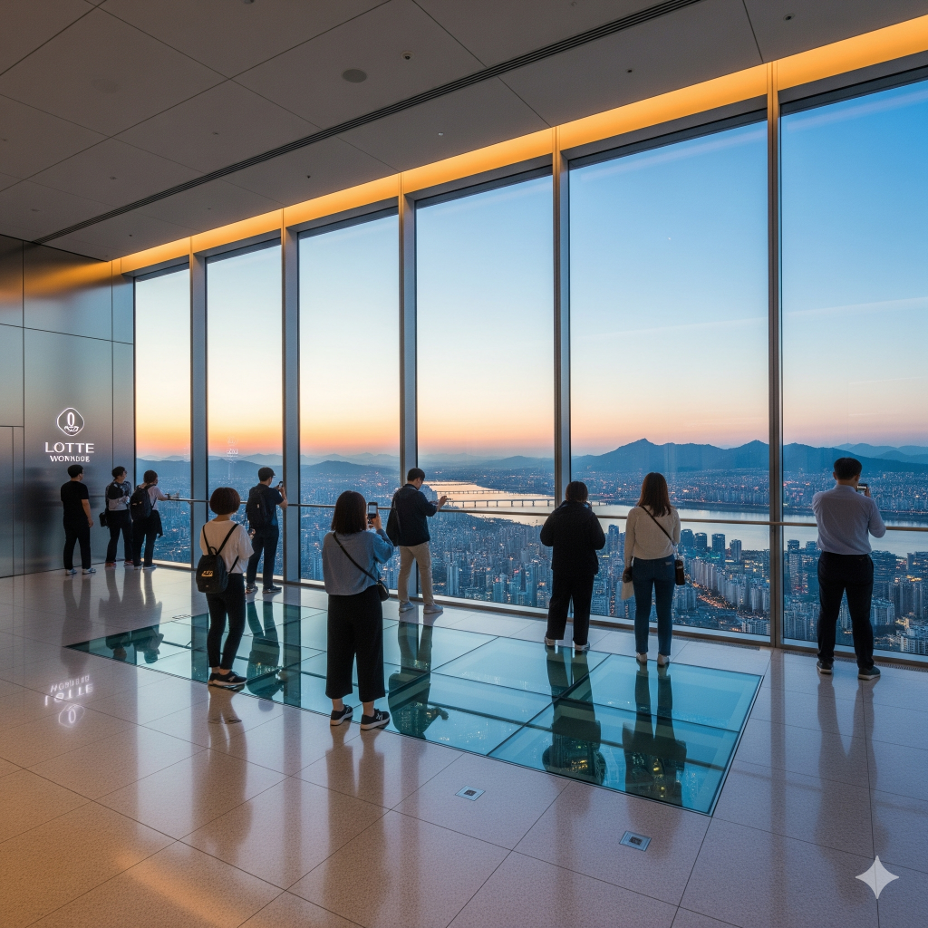 서울을 대표하는 랜드마크인 롯데월드타워는 그 높이만큼이나 압도적인 뷰와 경험을 제공하는 곳이다. 그 중에서도 가장 인기 있는 장소는 바로 ‘서울스카이’라는 이름의 전망대다. 123층에서 내려다보는 서울 도심의 파노라마 전경은 낮에는 청명한 한강과 도심을, 밤에는 화려한 야경을 한눈에 담을 수 있어 남녀노소 누구에게나 특별한 기억으로 남는다.