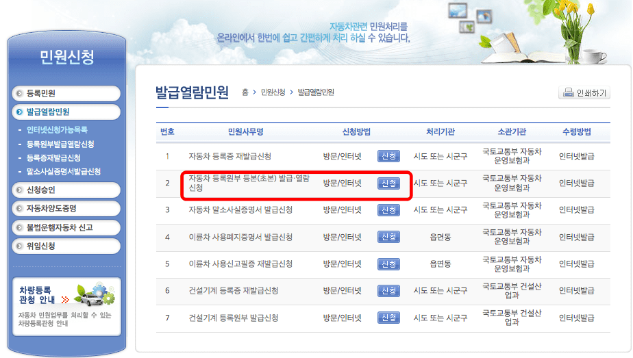 자동차 등록원부등본 인터넷발급 방법 (자동차민원 대국민포털)