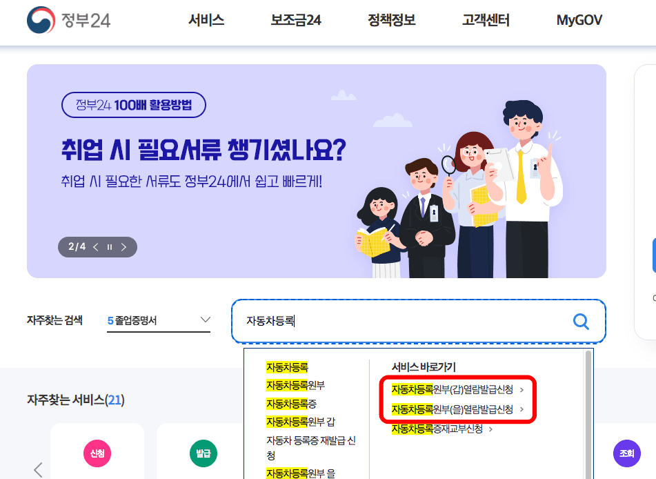 자동차민원 대국민포털 발급