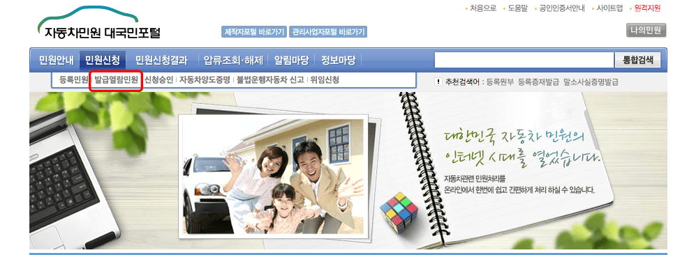 자동차 등록원부등본을 인터넷으로 발급받으려면 먼저 자동차민원 대국민포털 홈페이지에 방문해야 합니다. 아래 링크를 통해 이동하시기 바랍니다.