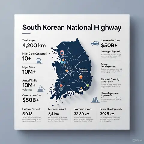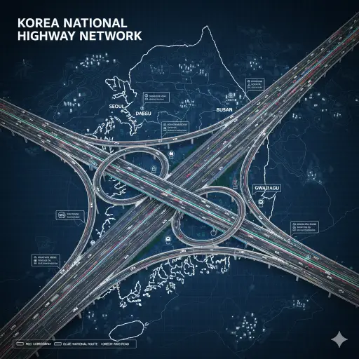 대한민국의 고속도로는 국토교통부와 한국도로공사가 관리하며, 총 연장은 약 5,000km 이상에 이른다. 전국을 가로지르는 주요 간선 고속도로부터 지방과 지방을 연결하는 지선까지 체계적으로 설계되어 있으며, 대부분의 고속도로는 유료로 운영된다. 경부고속도로, 중부고속도로, 서해안고속도로, 영동고속도로 등은 대표적인 간선 노선이다.