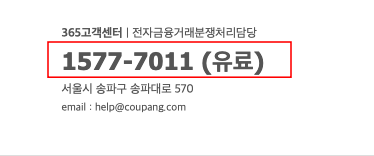 • 쿠팡 고객센터 : 1577-7011 (유료)